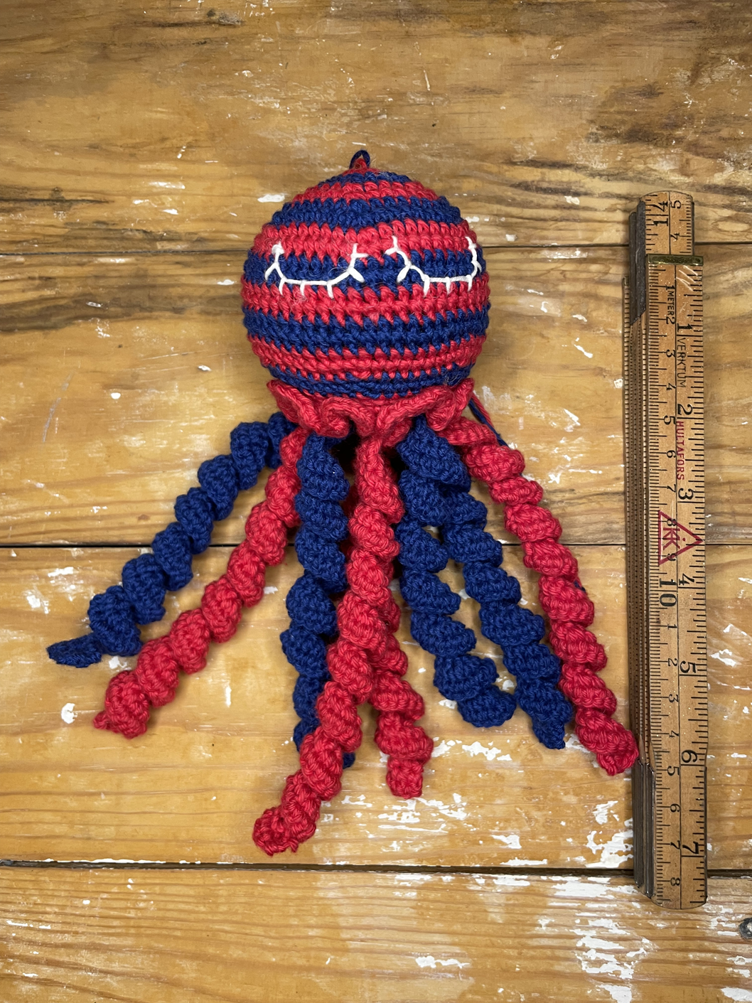 Mönstret följer reglerna för initiativet Octopus for Premature Babies (kroppen inte längre än 9 cm, tentaklerna inte längre än 20 cm när de är utsträckta). Ingen hårdplast eller farliga föremål används.