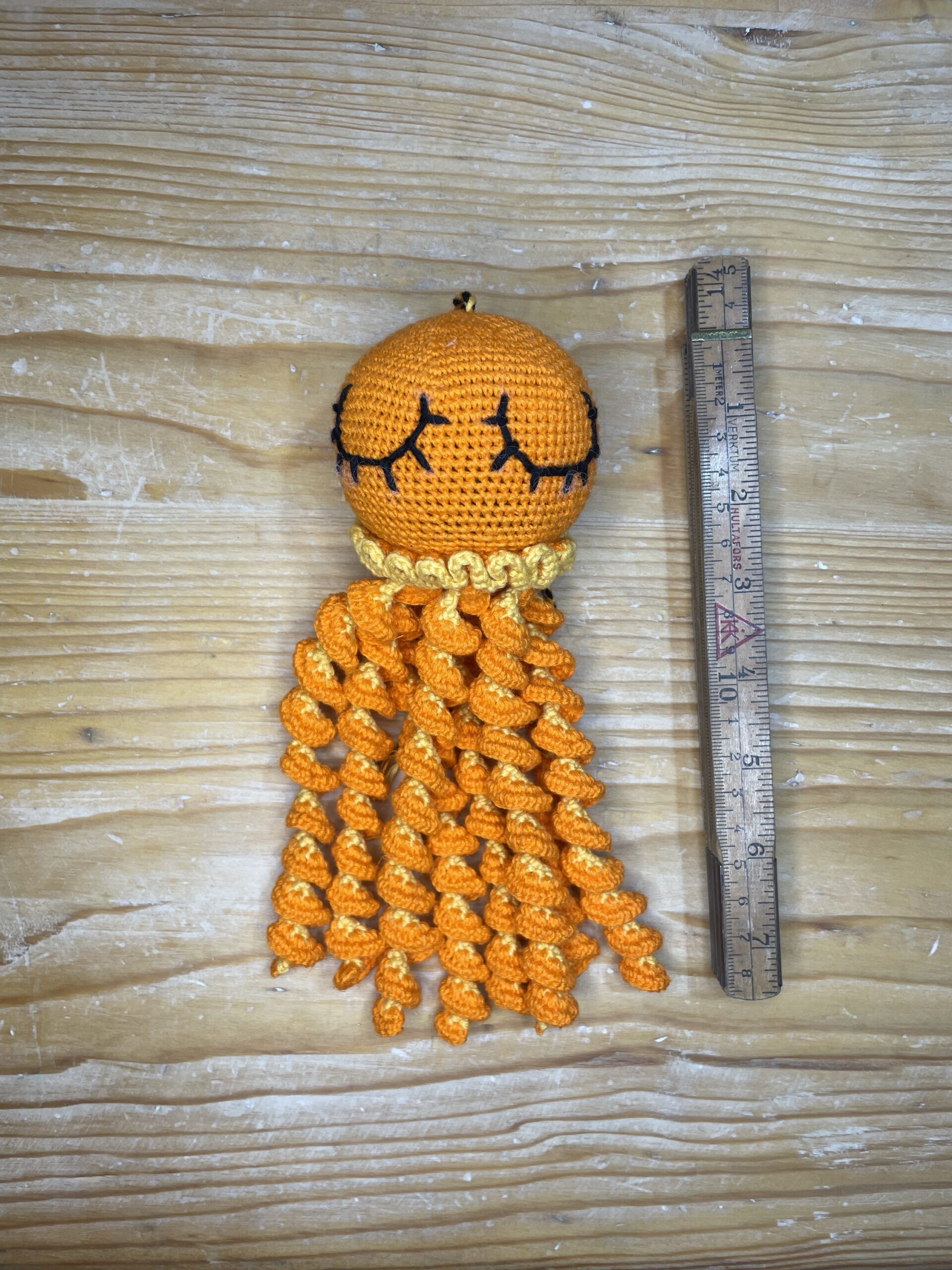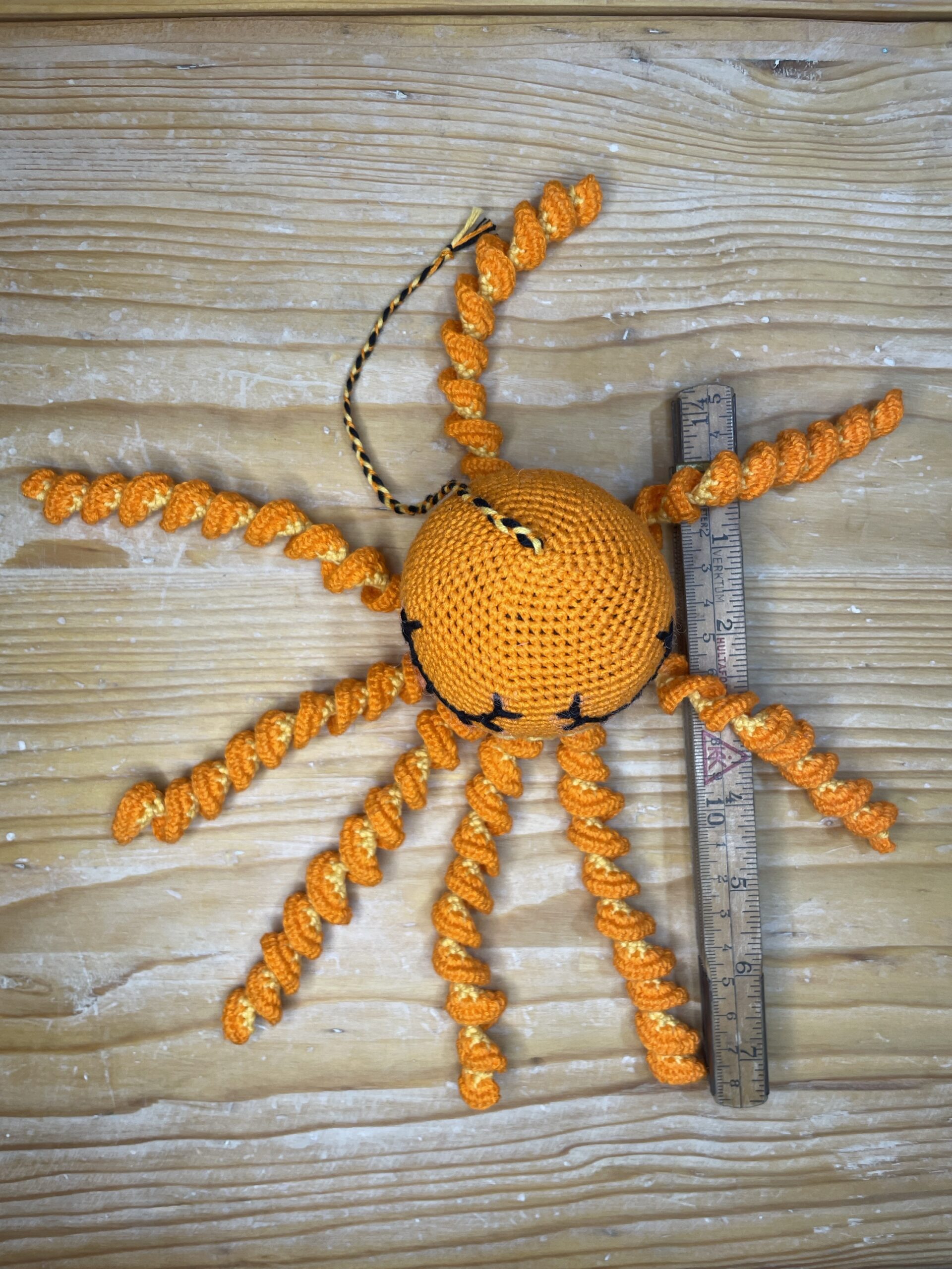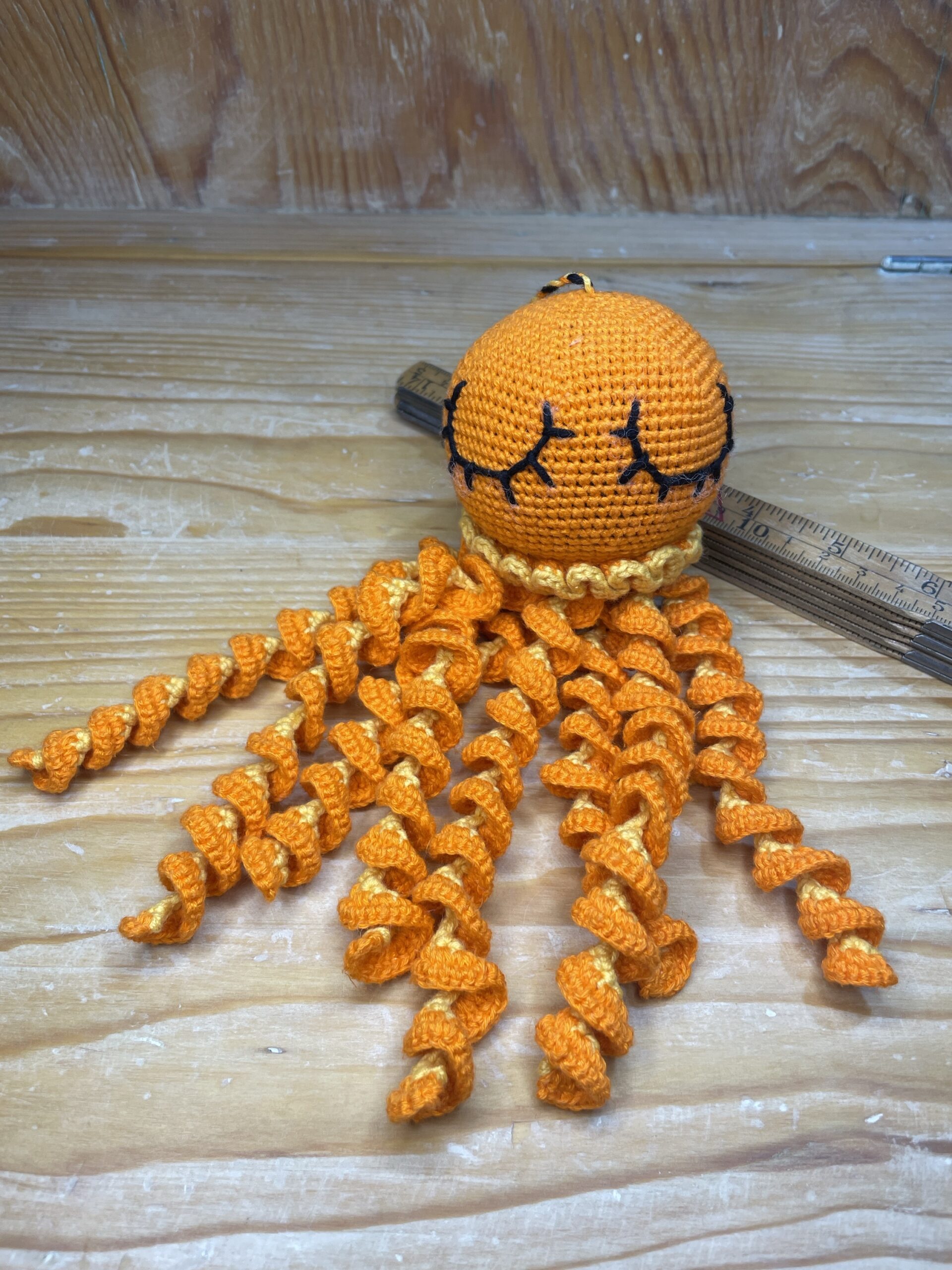 Mönstret följer reglerna för initiativet Octopus for Premature Babies (kroppen inte längre än 9 cm, tentaklerna inte längre än 20 cm när de är utsträckta). Ingen hårdplast eller farliga föremål används.
