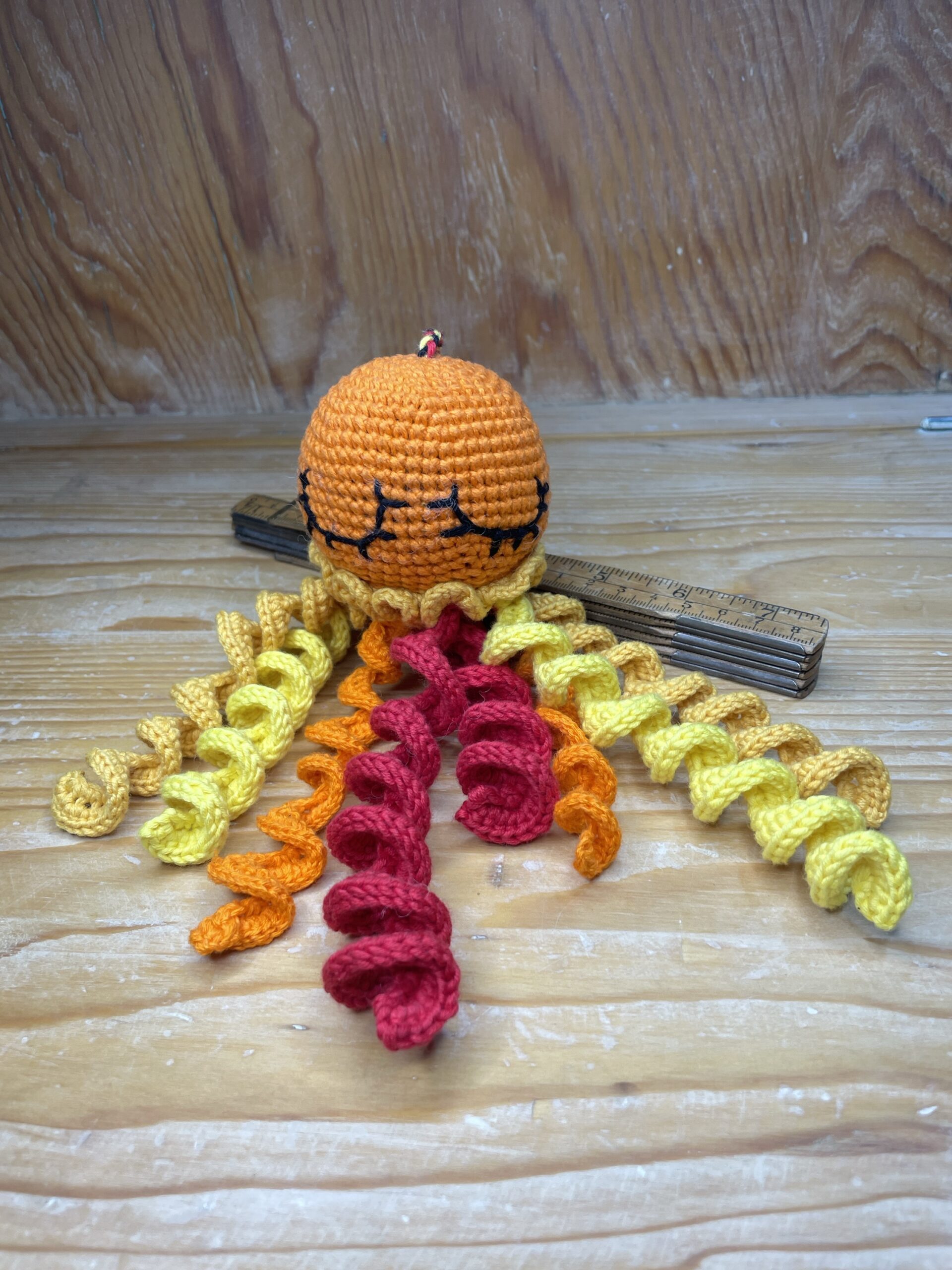 Mönstret följer reglerna för initiativet Octopus for Premature Babies (kroppen inte längre än 9 cm, tentaklerna inte längre än 20 cm när de är utsträckta). Ingen hårdplast eller farliga föremål används.
