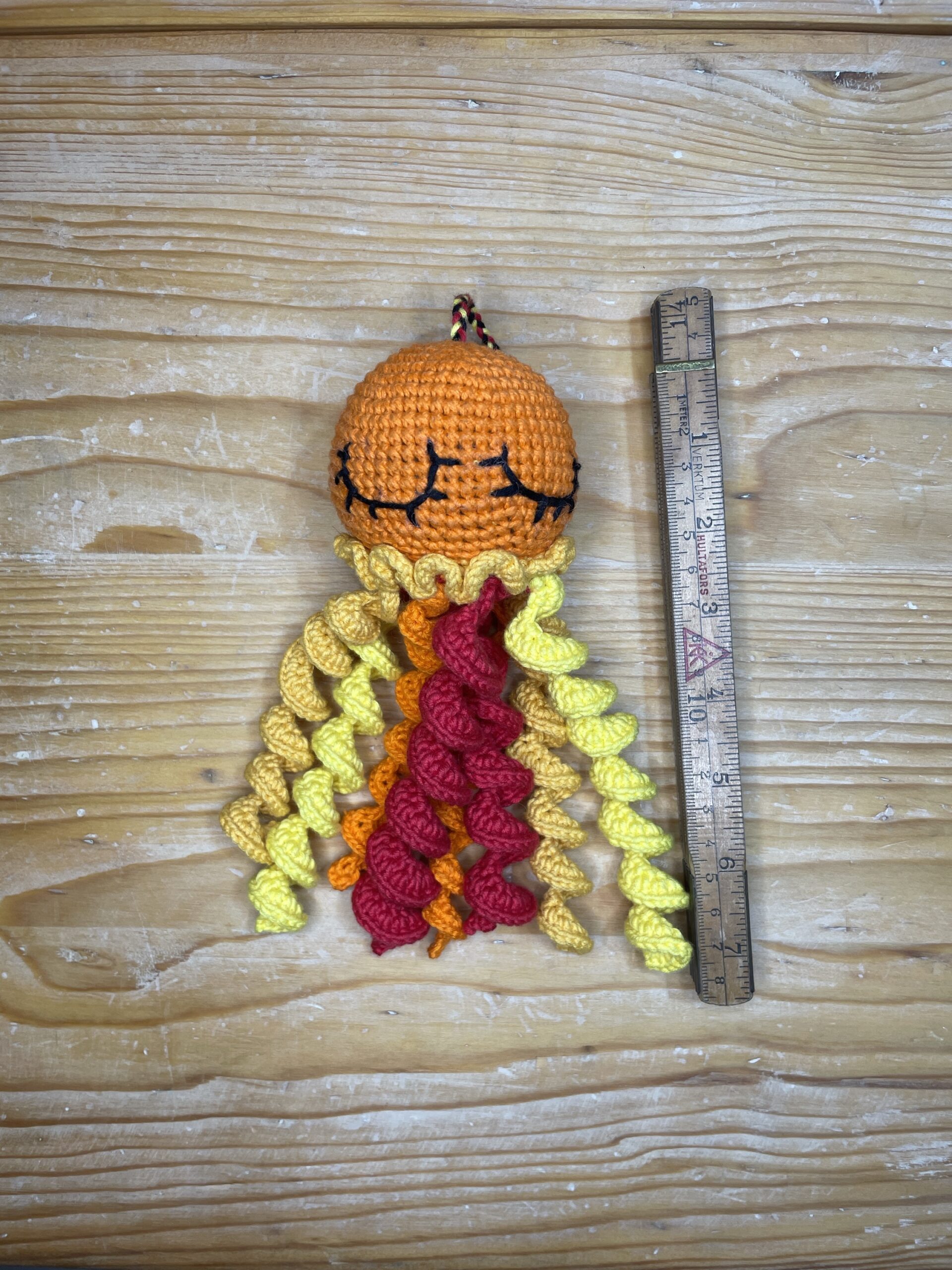 100% bomull från Hobbii.dk och Sadnes garn (regnbåge Oeko-Tex Standard 100 tvättbar upp till 60 * grader) och allergivänlig fyllning (Oeko-Tex Standard 100 tvättbar upp till 95 * grader) gör det enkelt att hålla bläckfisken ren.
