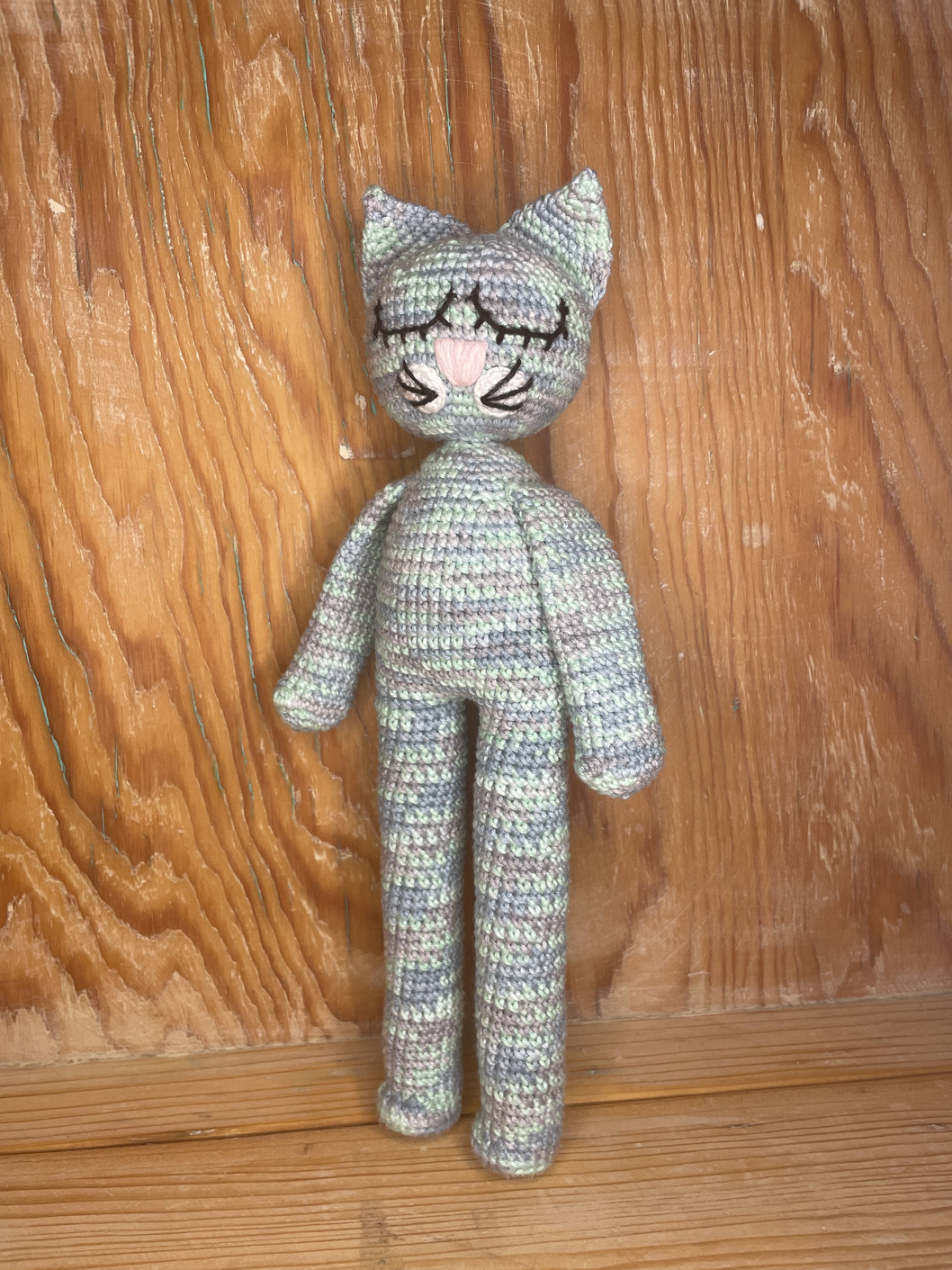 Bra present till små barn, katten är lätt för små händer att greppa. Inga små plastögon eller andra farliga delar används.