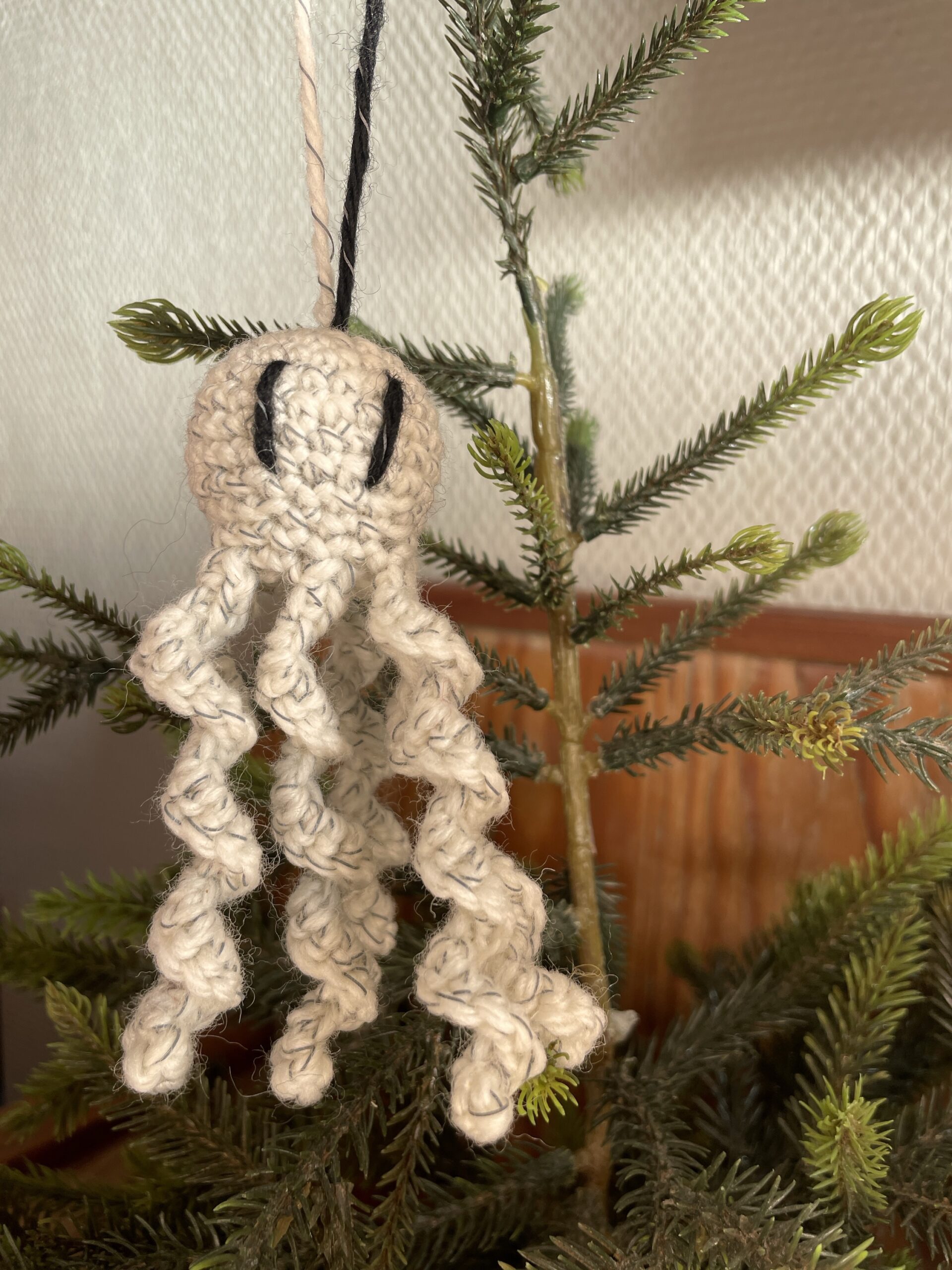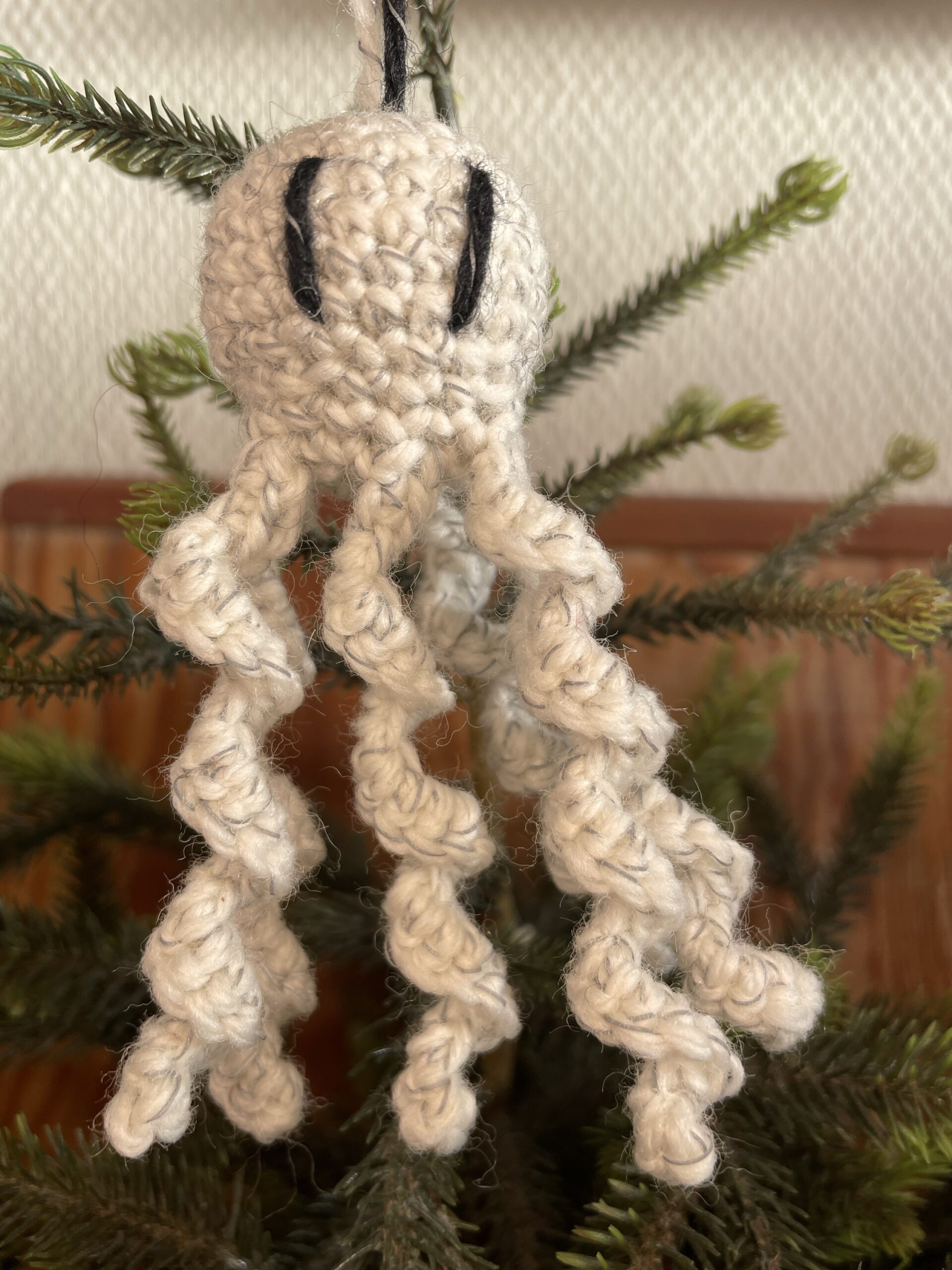 Minibläckfisk som nyckelring gjort av Reflexgarn.