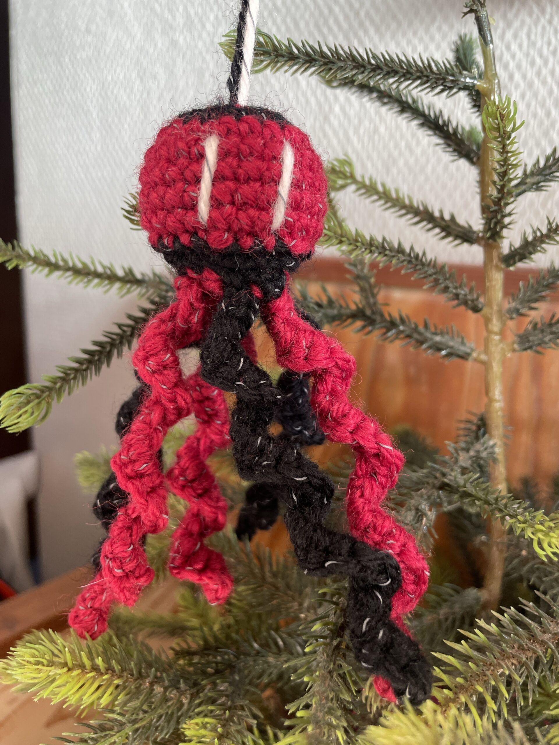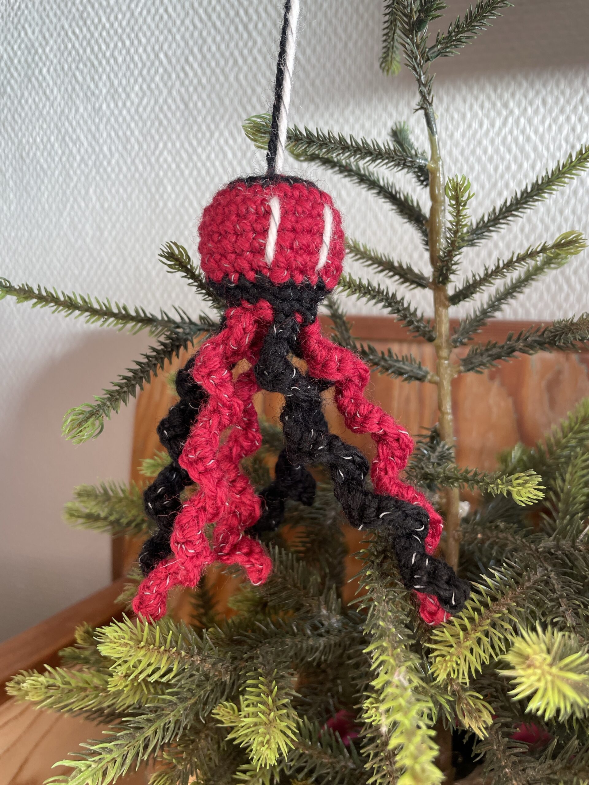 Minibläckfisk som nyckelring gjort av Reflexgarn.