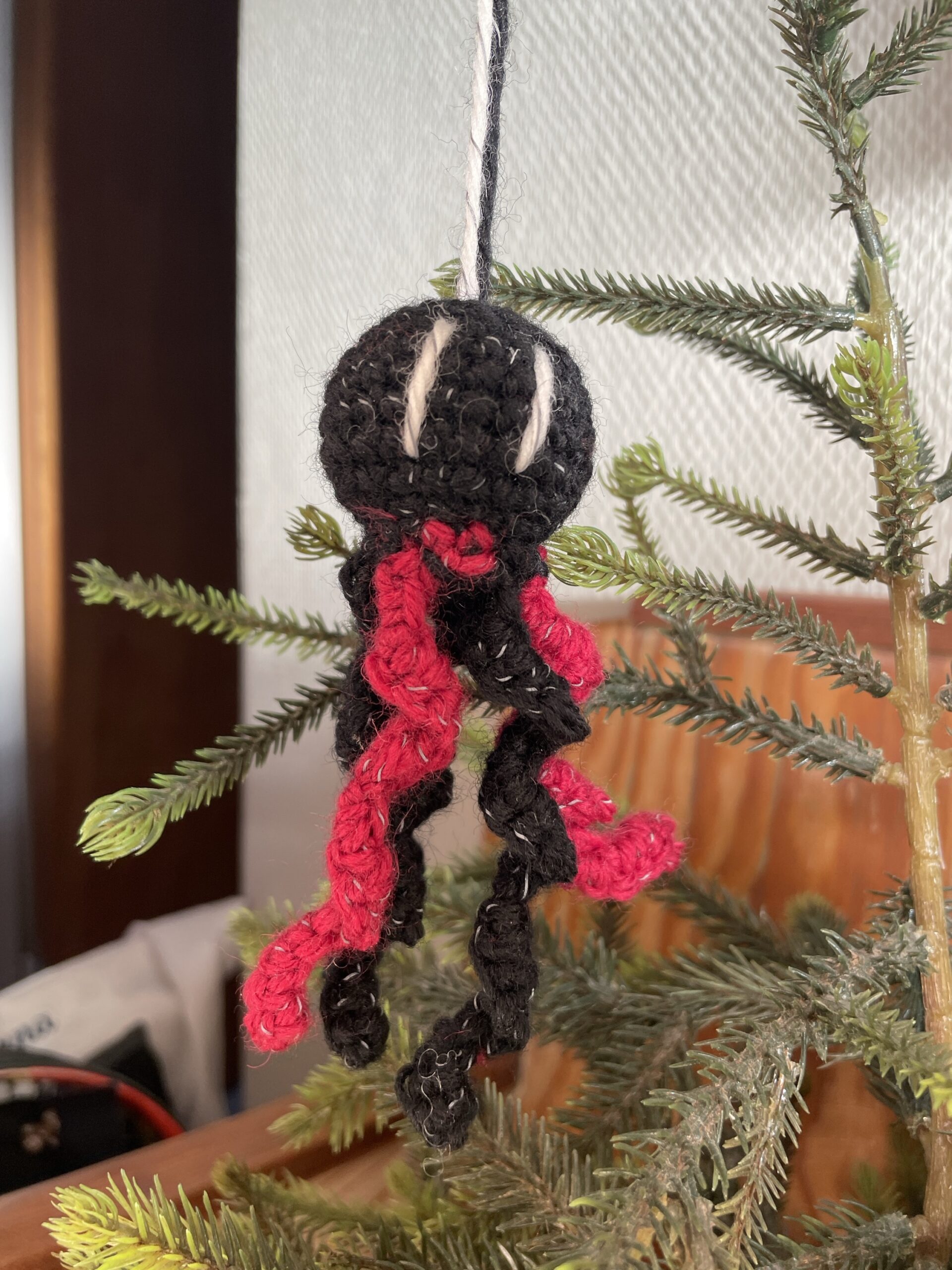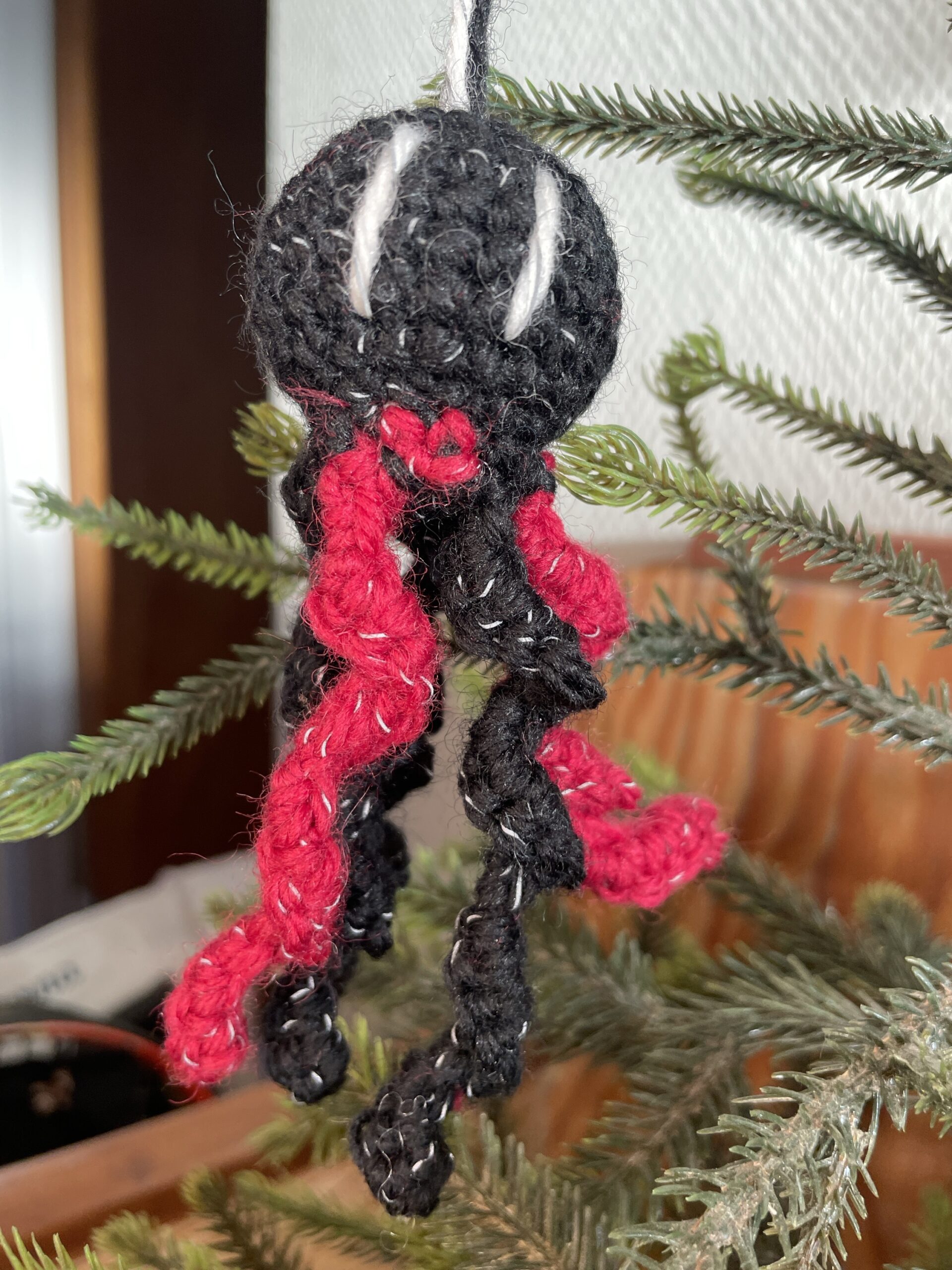 Minibläckfisk som nyckelring gjort av Reflexgarn.